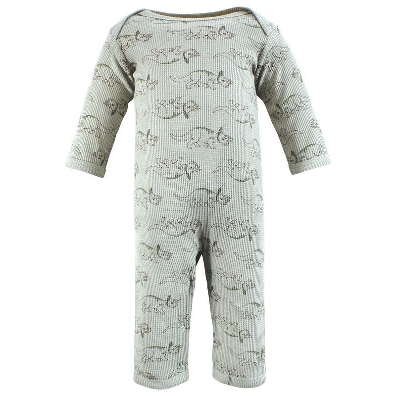 Hudson Baby Infant Boy Thermal Coveralls 2pk, Sage Dinosaur, 0-3 Months