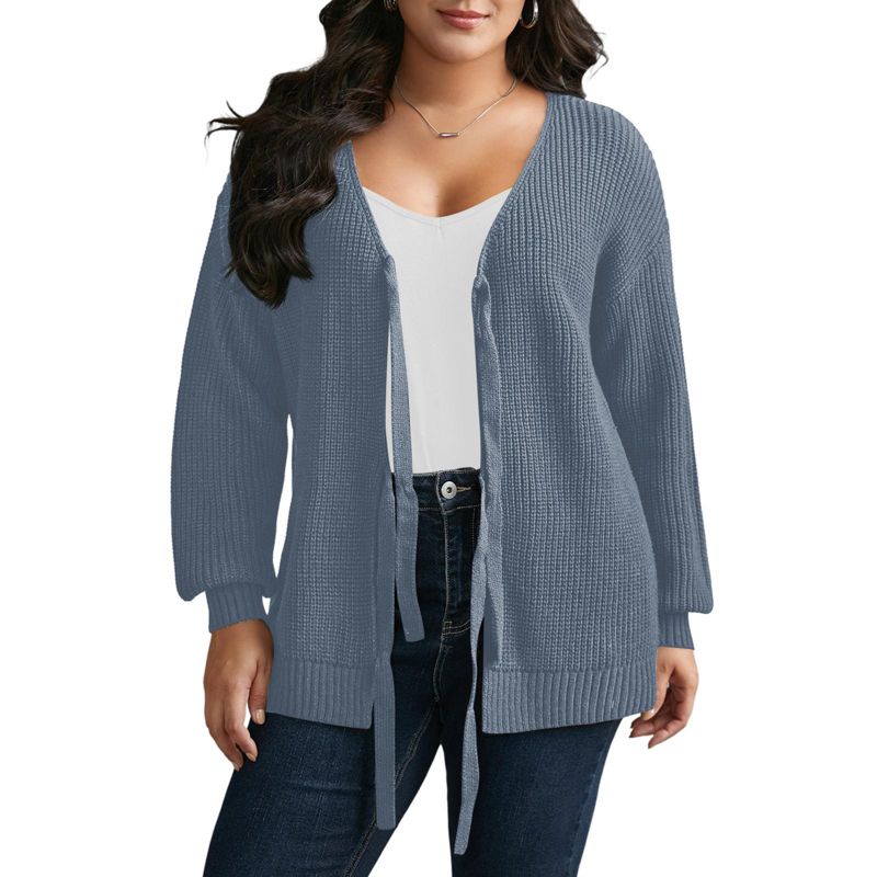 Cardigan Sweaters for Women Trendy Open Front Long Sleeve Button Down Bow Knot Cropped Lady Jacket Gray 5XL