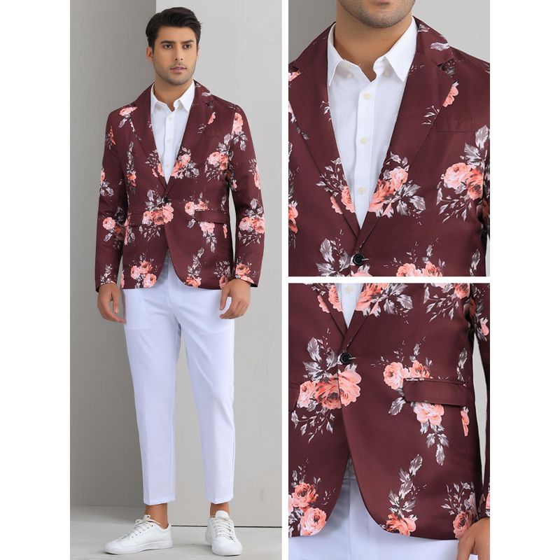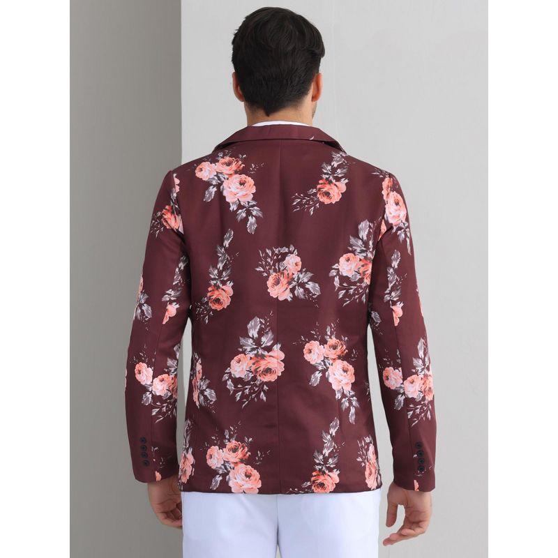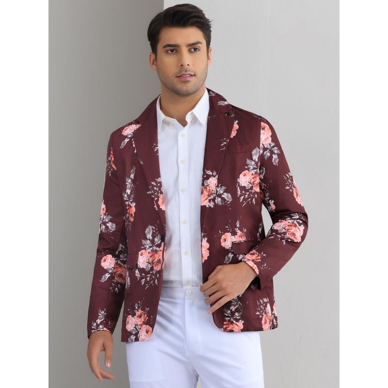 Lars Amadeus Men's Slim Fit Dress Party Flower Printed Floral Sport Coats Burgundy Medium
