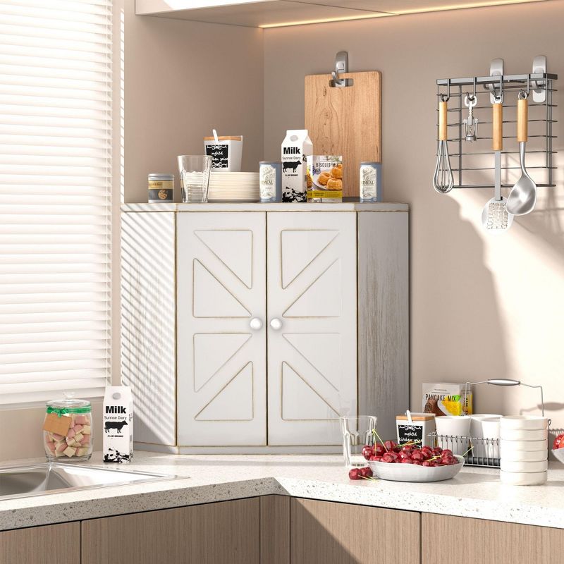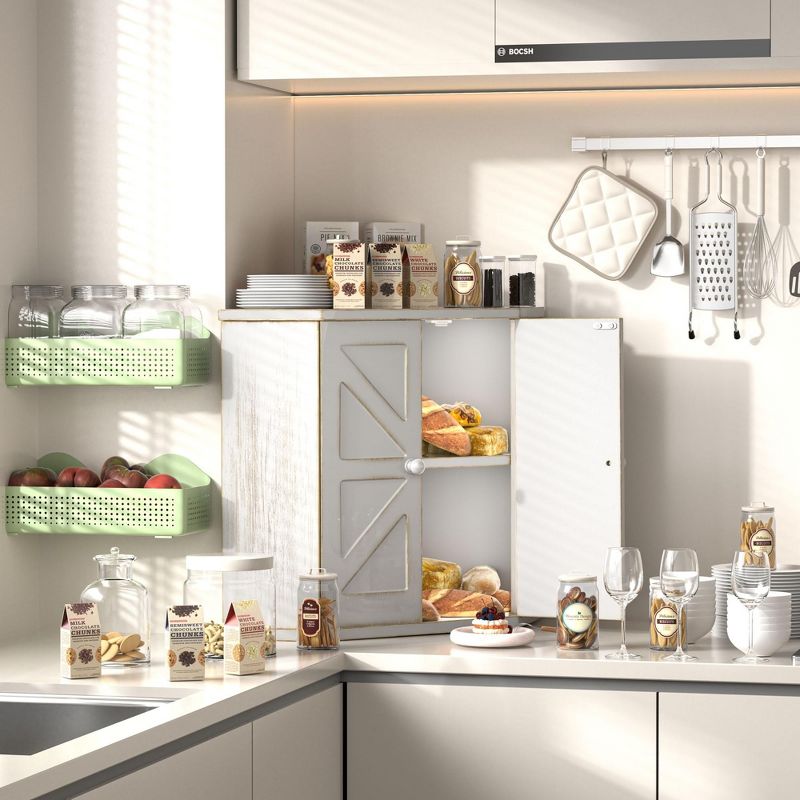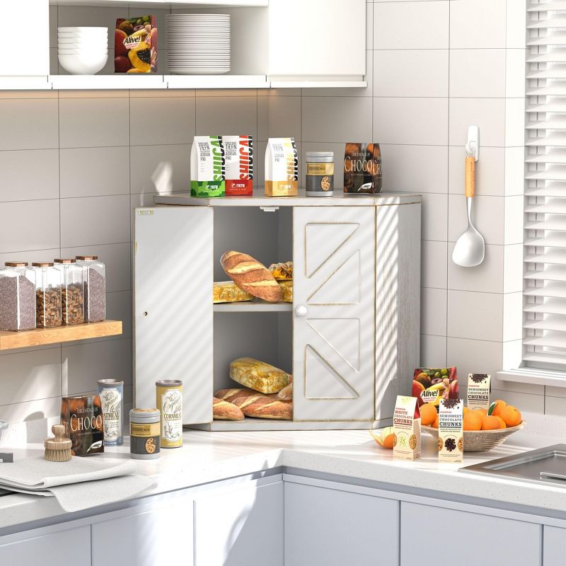 MOEPISY Corner Wooden Bread Box for Kitchen Countertop, Space-Saving Storage for Homemade Bread, Antique White