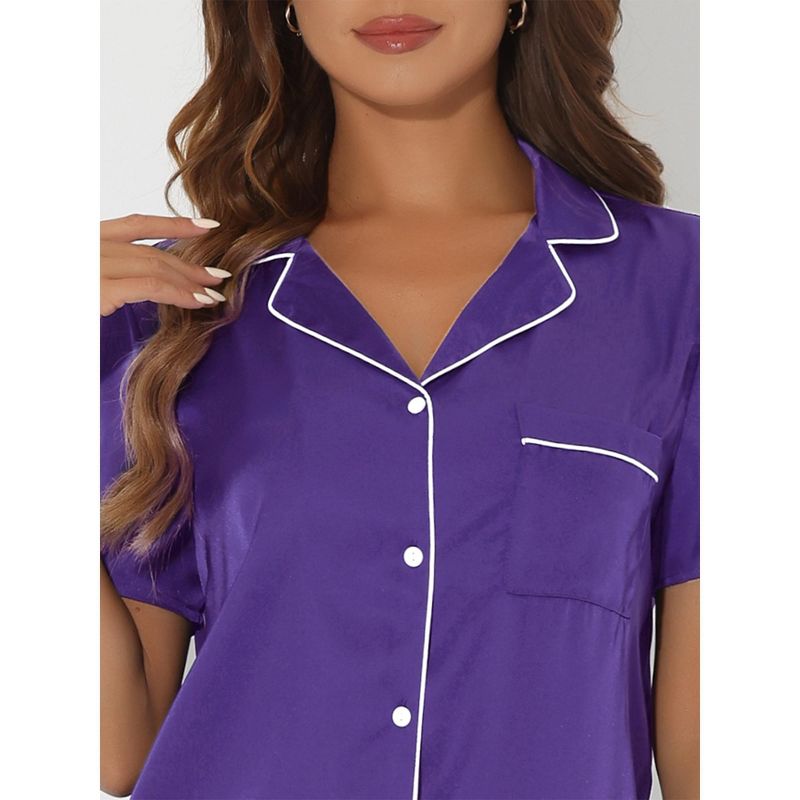 cheibear Women's 2 Pcs Silky Satin Short Sleeve Top Nightwear with Shorts Lounge Sleepwear Pajama Set X-Large Purple