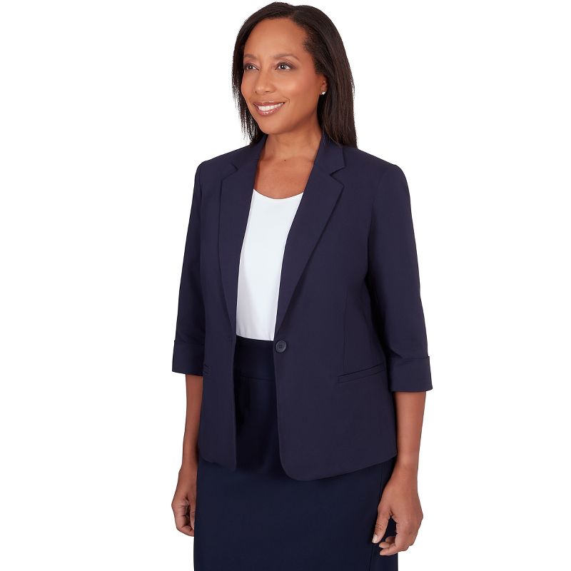 Alfred Dunner Women's Classic Fit Jacket, Navy, Size 10