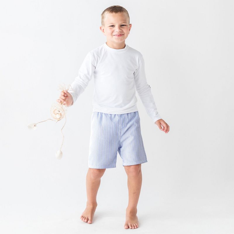 RuggedButts Infant Periwinkle Blue Seersucker Swim Trunks - Periwinkle Blue Seersucker, Size : 3-6 Months