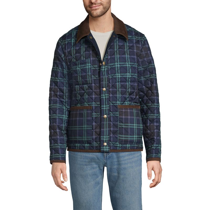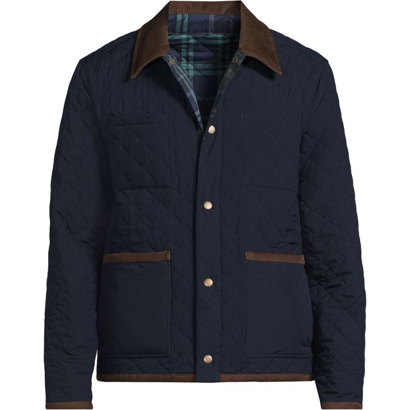Lands' End Men's Reversible Insulated Barn Jacket - Medium - Radiant Navy/Navy Plaid