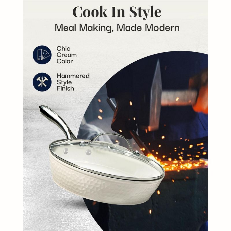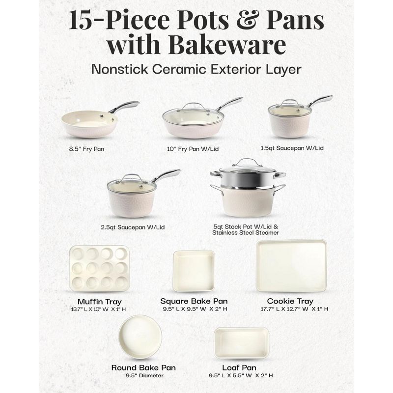Gotham Steel Hammered Cream 15 Pc Nonstick Pots and Pans Cookware and Bakeware Set