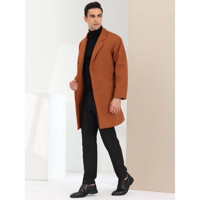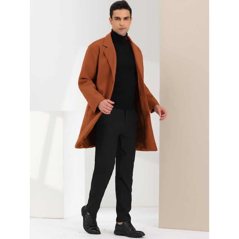 Lars Amadeus Men's Winter Notched Lapel Single Breasted Mid-Length Overcoat Brown Small