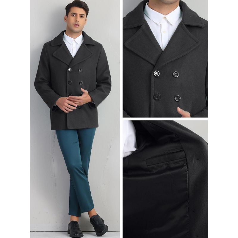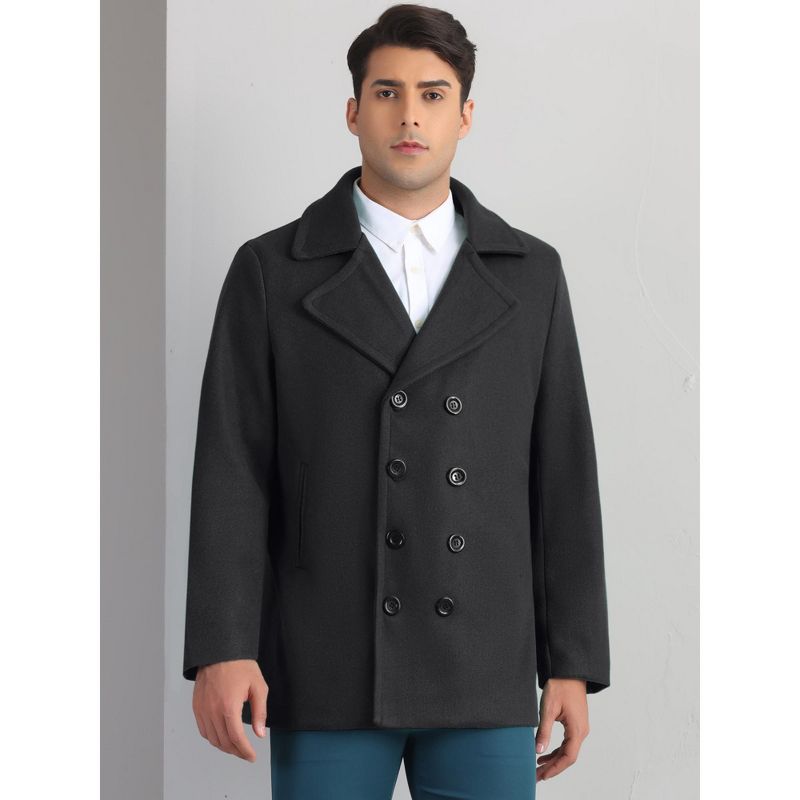 INSPIRE CHIC Men's Notched Collar Double-Breasted Formal Classic Peacoats Black Medium