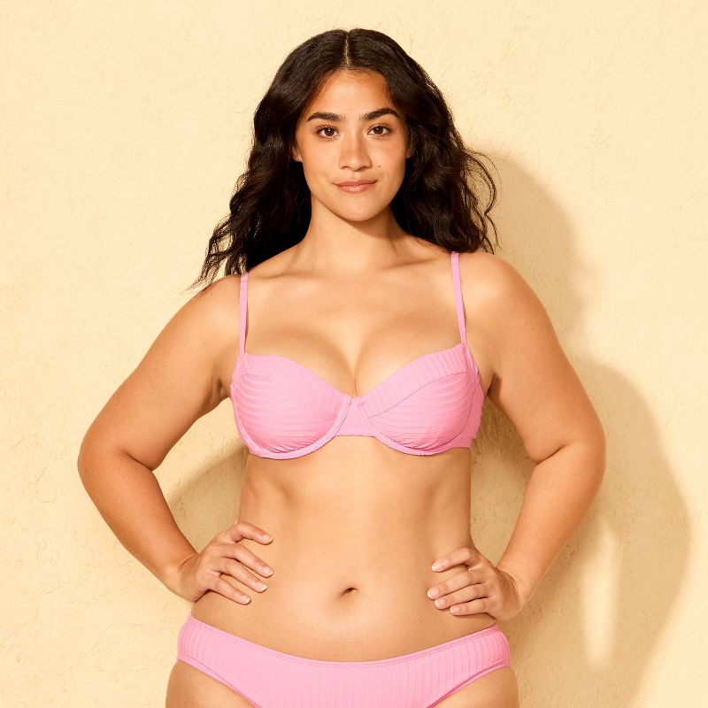 Women's Ribbed Underwire Bikini Top - Shade & Shore™ Pink 32A