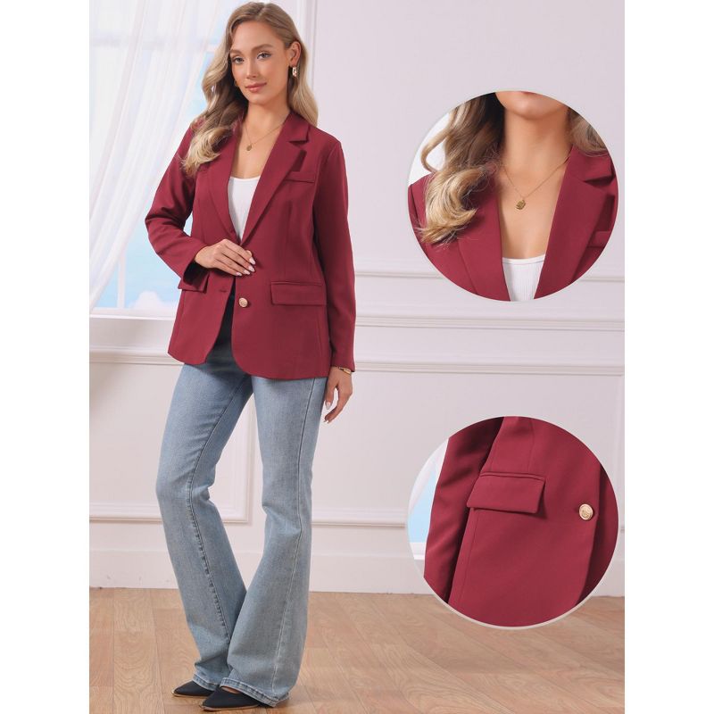 INSPIRE CHIC Women's Notched Lapel Single Breasted Long Sleeve Straight Lined Suit Jacket Blazer Large Wine Red