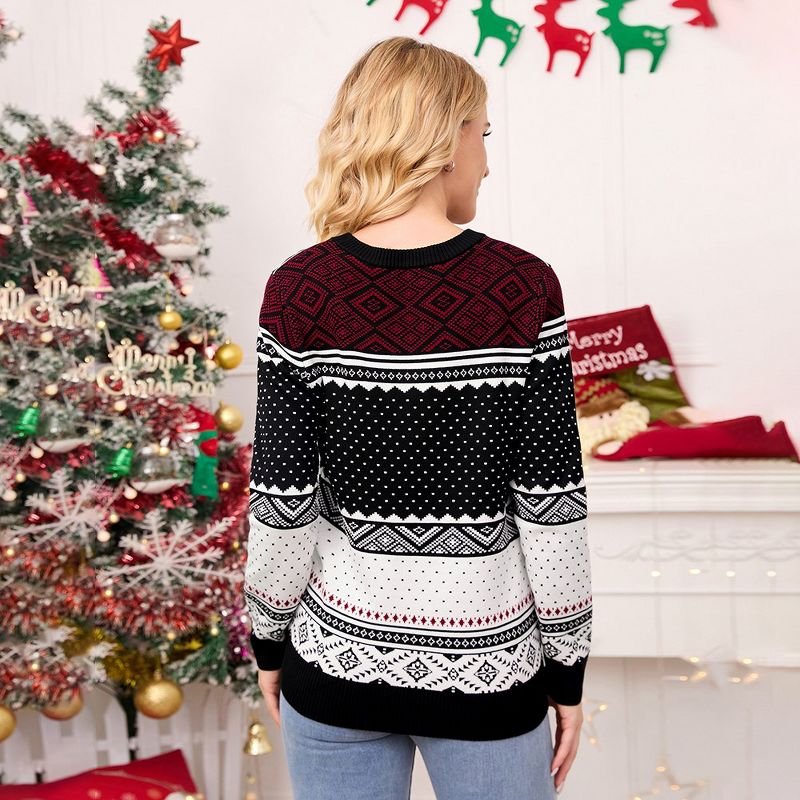 Womens Christmas Sweater 2025 for Winter Holiday Festive Jacquard Pullovers Classic Fair Isle Pattern Christmas Sweaters,Black - S