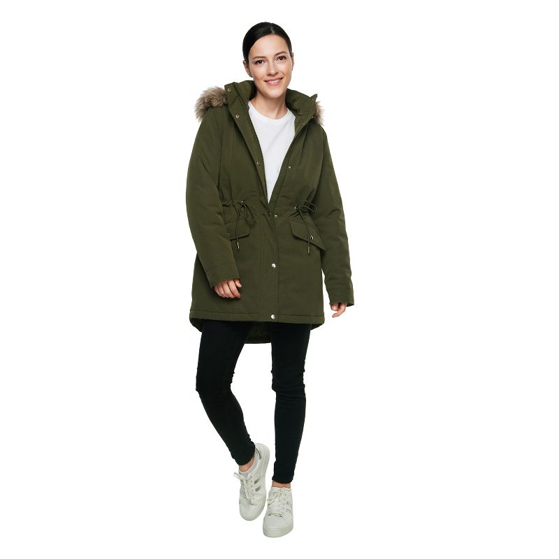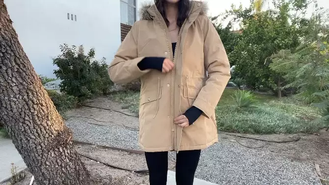 Rokka&Rolla Women's Mini Fur Lined Parka Coat-Olive, size Medium