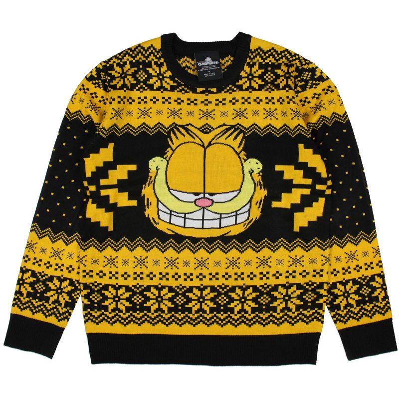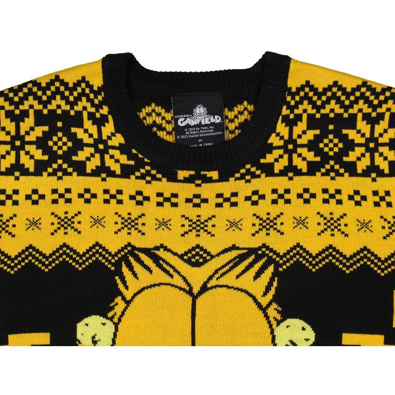 Garfield Men's Big Grin Fair Isle Design Knit Pullover Holiday Ugly Sweater for Christmas, Medium Black