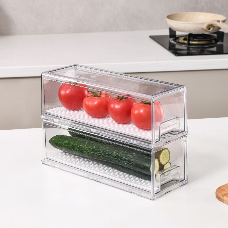 SharpChef Stackable Kitchen Pantry Storage Drawers, Removable Drainage Tray for Fruit & Vegetables, Handles, Kitchen Pantry, Refrigerator, Bathroom