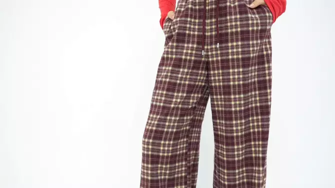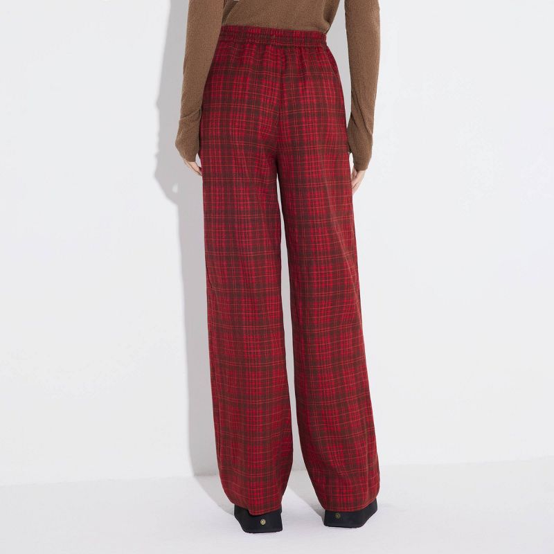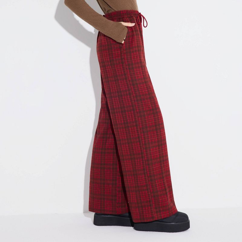 Women's Mid-Rise Wide Leg Pull-On Pants - Wild Fable™ Red/Black Plaid XS