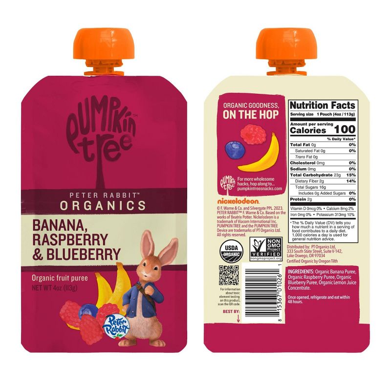 Peter Rabbit Organics Pumpkin Tree Banana Raspberry & Blueberry Baby Food Pouch - 4oz