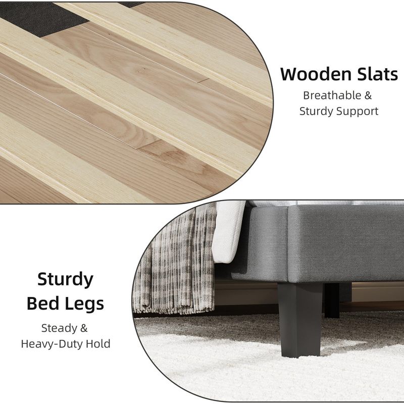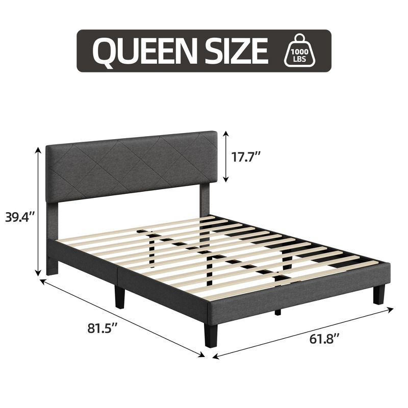 Queen Bed Frame with Upholstered Headboard, Platform Bed Frame with Wooden Slat Support