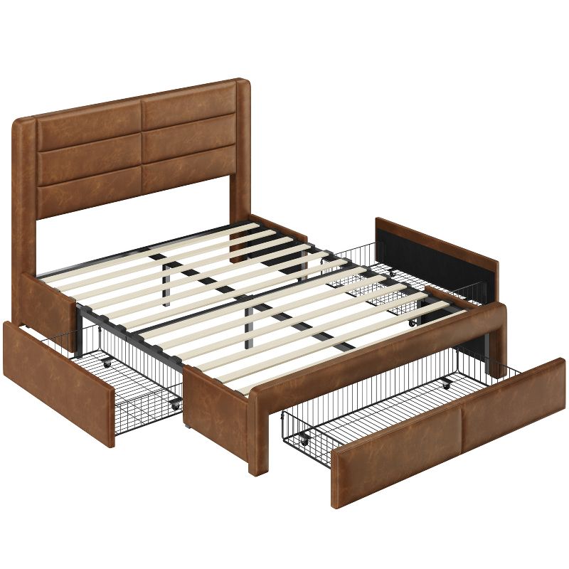 Yaheetech Upholstered Queen Size Bed Frame with 3 Storage Drawers and Built-In USB Ports, Amber Brown