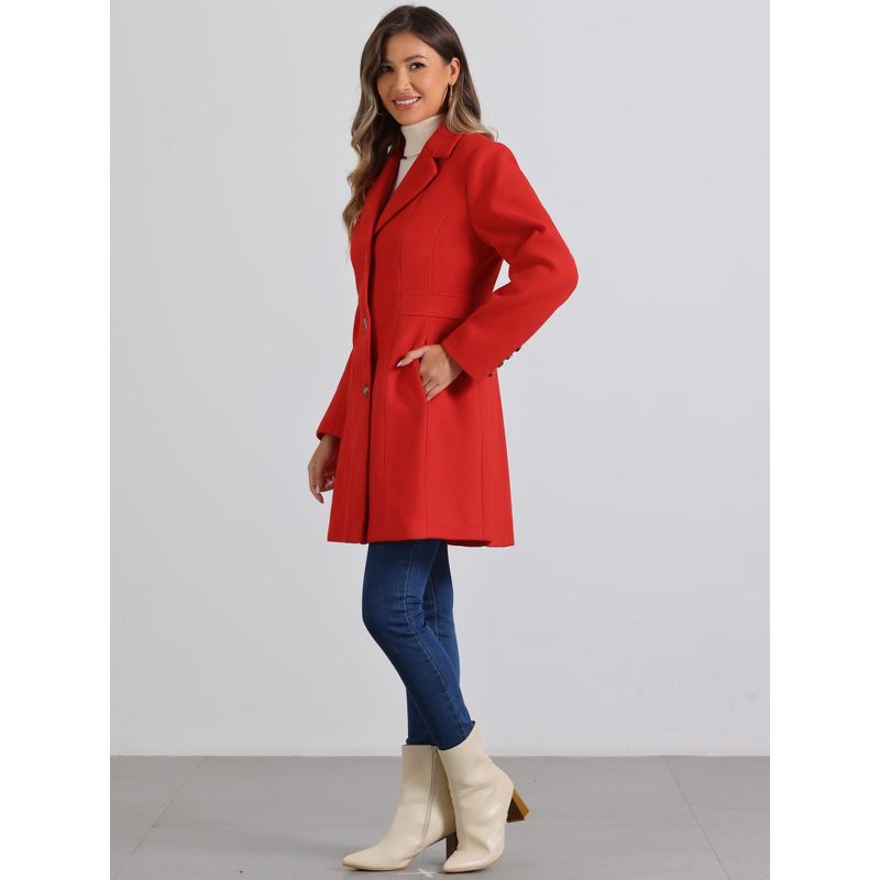 INSPIRE CHIC Women's Single Breasted Notched Lapel Long Winter Trench Coats Large Red
