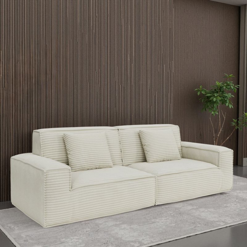TiramisuBest 106.3" Large Striped Fabric Compression Sofa, Modern Comfortable Living Room & Bedroom Furniture, High Rebound Beige