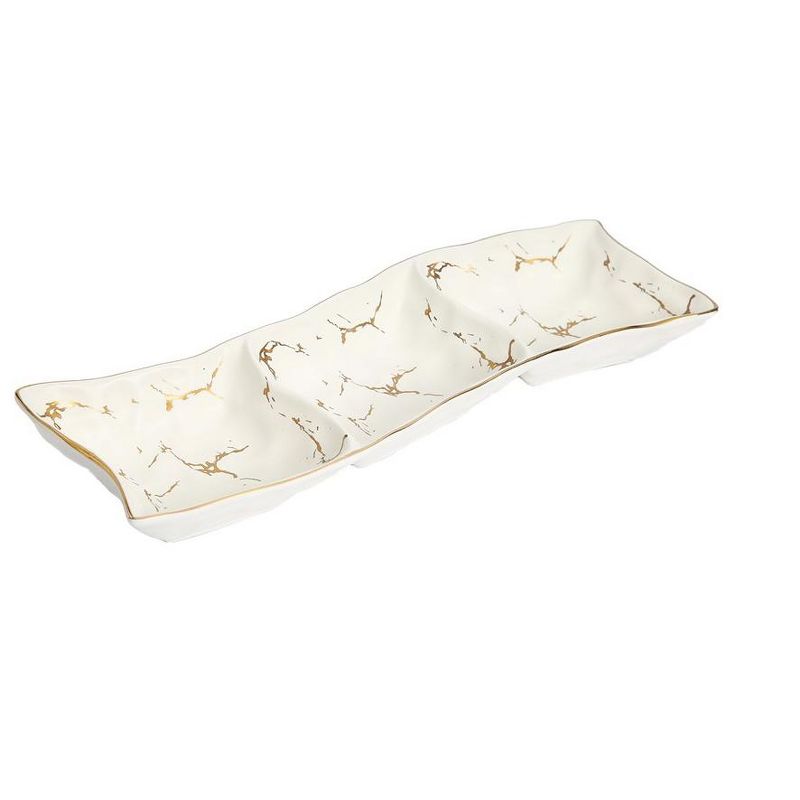 White Porcelain Relish Dish with Gold Design -13.5"L