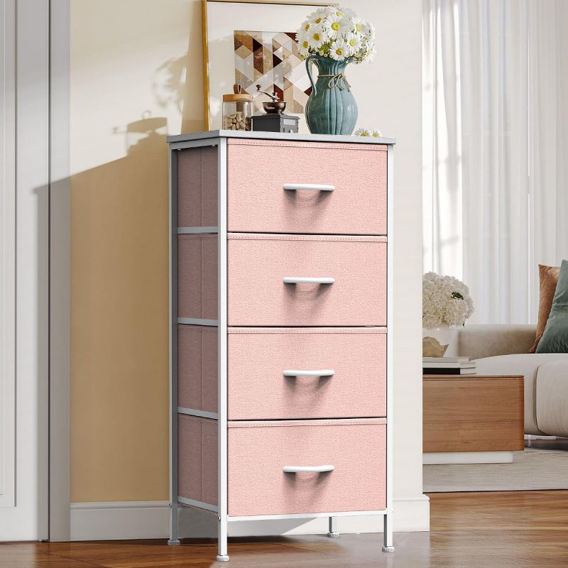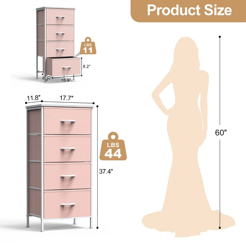 FONTOI Nightstands with Four Drawers, Beside Sofa Table, Accent Table Organizer, Ideal for Bedroom Furniture, Pink, 17.72"*11.81"*37.4"