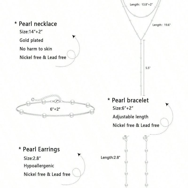 Dainty 14K Gold/Silver Plated Pearl Jewelry Set for Women, Wedding Trendy Gift. Silver Standard