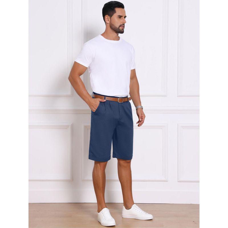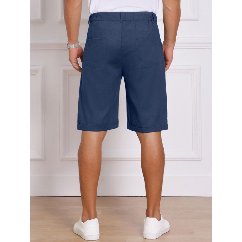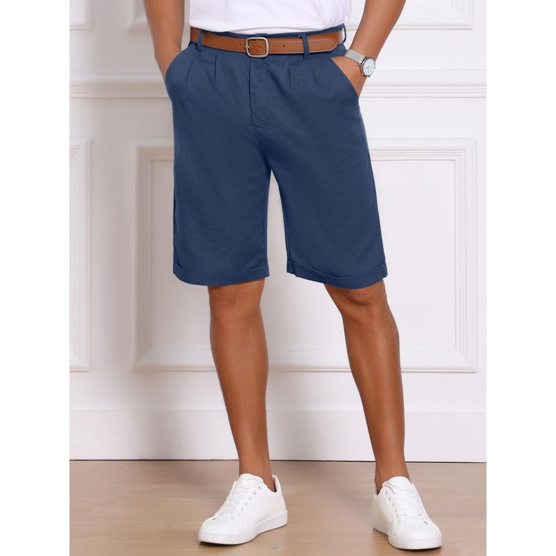 INSPIRE CHIC Men's Linen Pleated with Pockets Above Knee Casual Shorts 34 Dark Blue