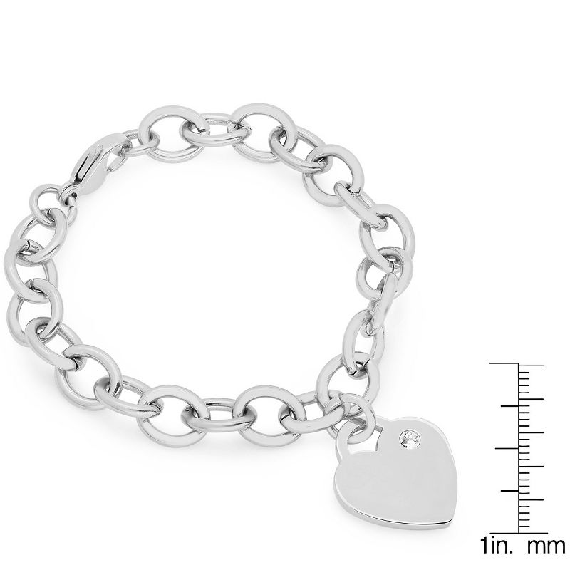 Steeltime Ladies stainless steel rolo heart bracelet adorned with swarovski crystals