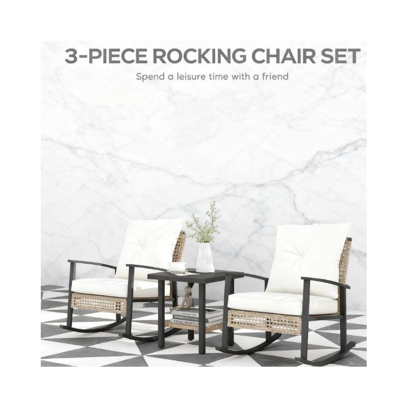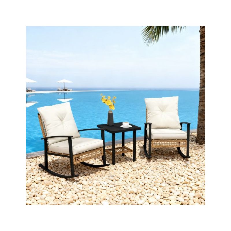 GDFStudio Ocilla Outdoor Iron and Rattan 3 Piece Chat Set, Beige/Black