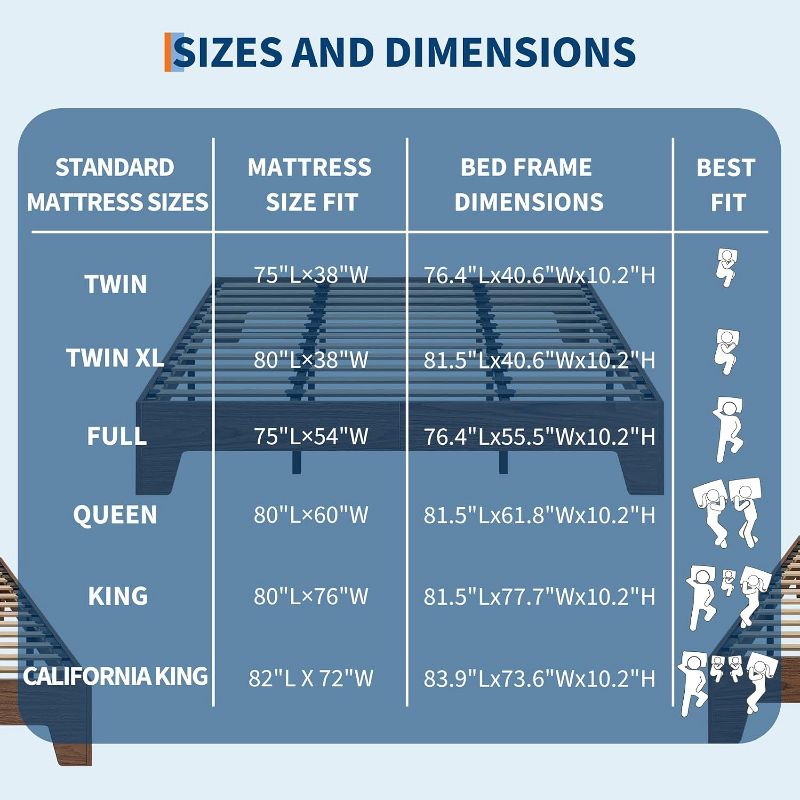 TackView 10-Inch Wood Platform Bed Frame with Slats – No Box Spring Needed, Minimalist Bedroom Furniture,Pine,Twin Extra Long