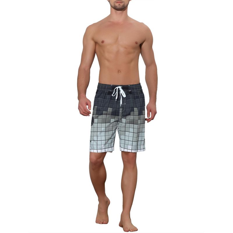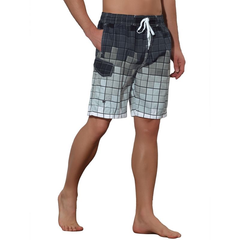 Lars Amadeus Men's Hawaiian Drawstring Waist Color Block Plaid Board Shorts 2 Packs Gray/Gray 36
