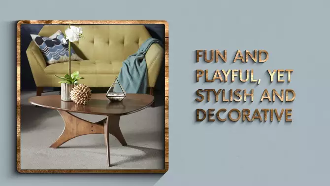 Blaze Triangle Wood Coffee Table Pecan: Chic Mid-Century, Unique Base, Living Room Furniture