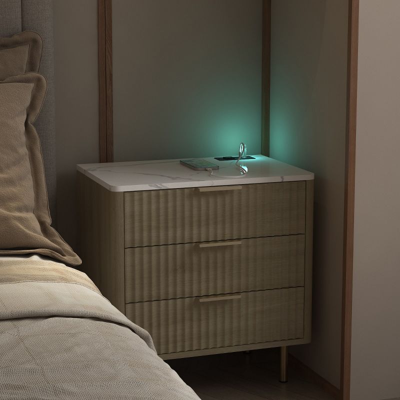 AZL1 Life Concept Nightstands with Night Light, Modern Night Stand with 2 Storage Cabinetsr, Ideal for Bedroom Furniture, Yellow, 22.83"*15.35"*23.62"