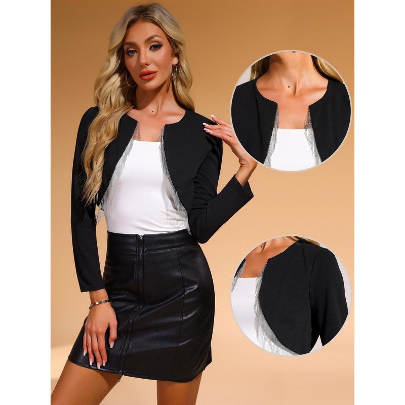 INSPIRE CHIC Women's Long Sleeve Fringed Trim Blazer Black Large