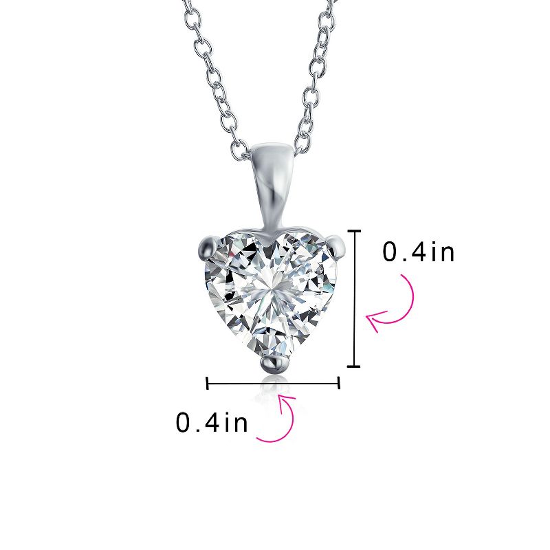 Bling Jewelry 5CT Heart Shaped Solitaire Pendant Necklace Sterling Silver CZ Cubic Zirconia Color - Clear
