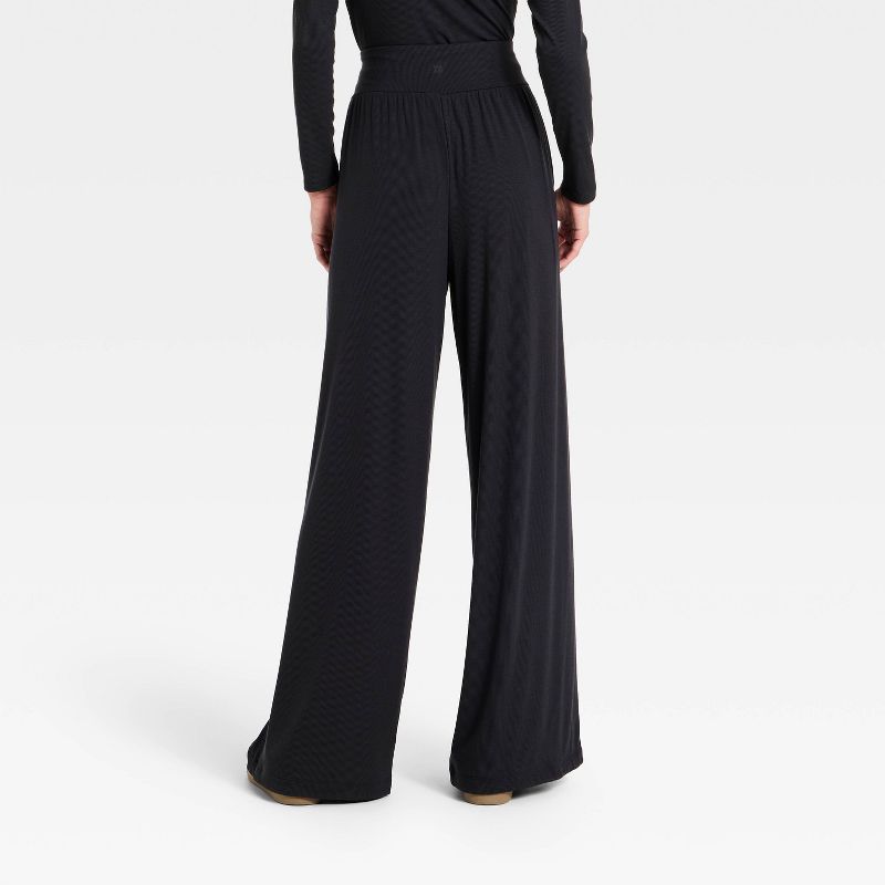 Women's Rib-Knit High-Rise Wide Leg Pants - All In Motion™ Black XL