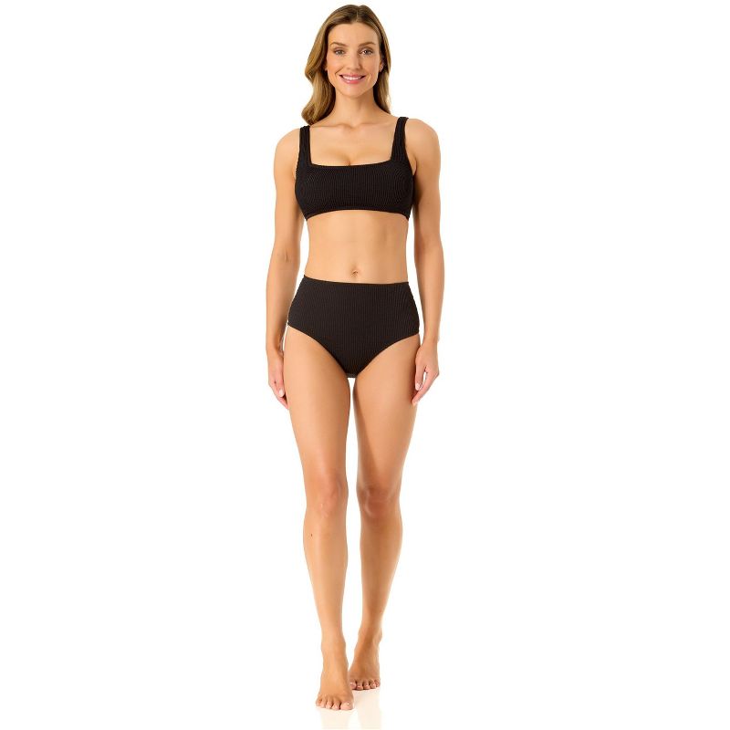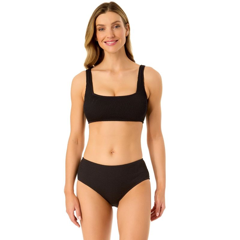 Anne Cole Women's Live In Color Textured Classic Square Neck Bralette Bikini Swim Top-Black-S