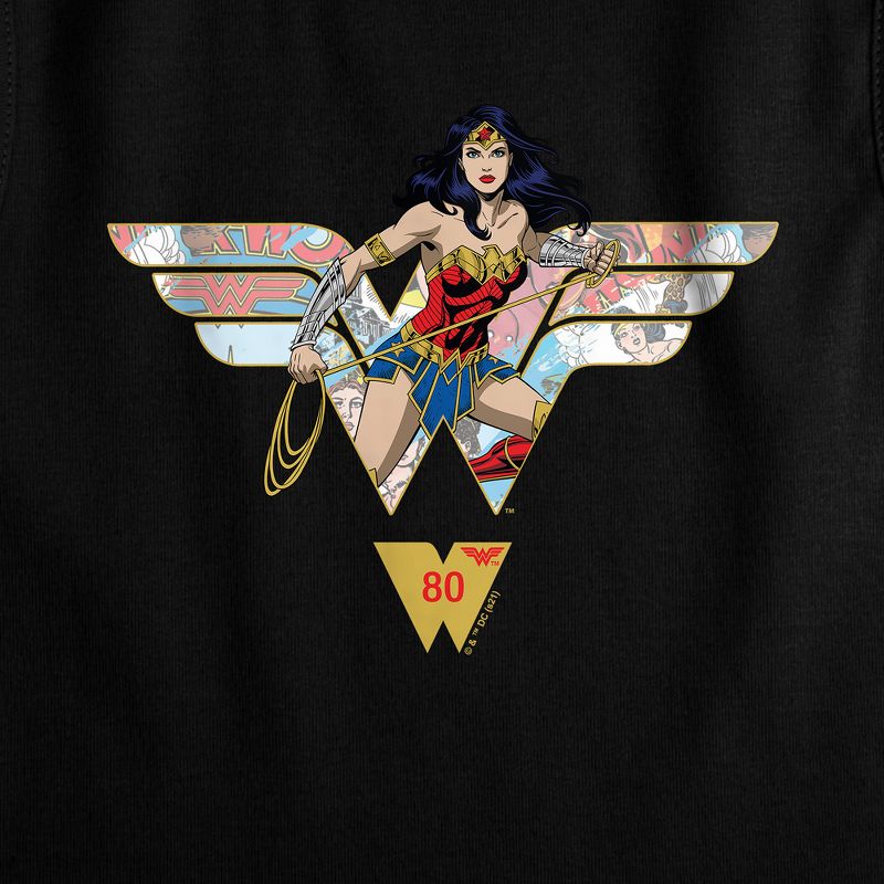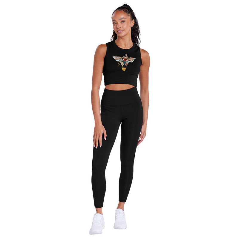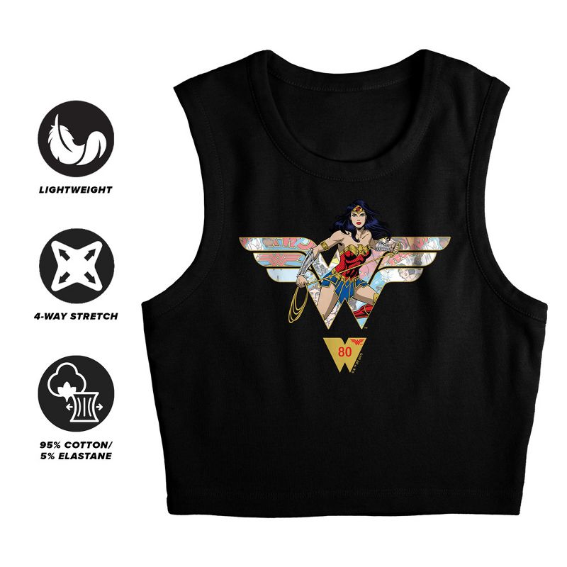 Women's Wonder Woman 80Th Collage Logo Sleeveless Crop Top Tank Black X Large