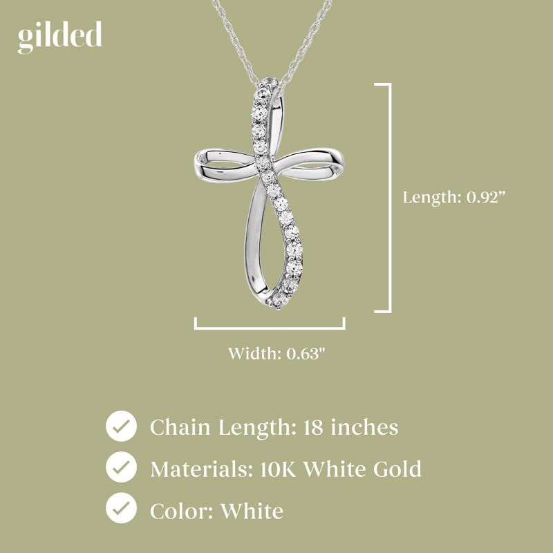 GILDED 1/4 Carat Total Weight Natural Round-Cut Diamond Twist Cross Pendant-Necklace in 10KT White Gold, 18" Chain