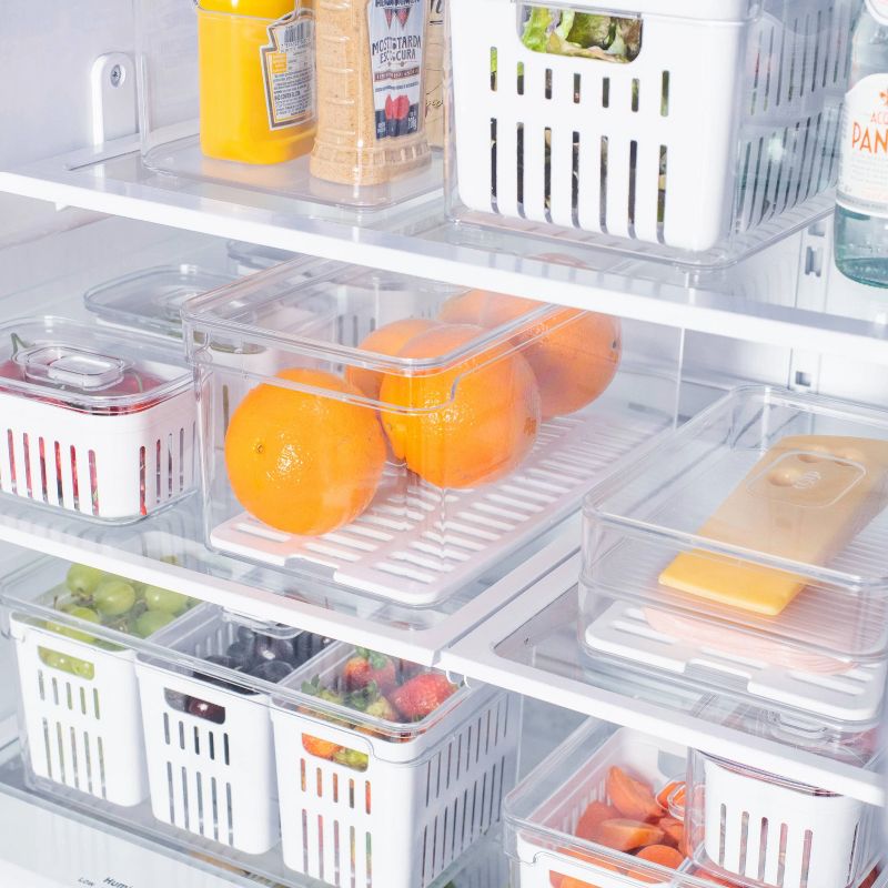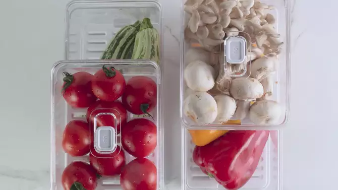OU Fridge Organizer Bin with Vented Lid, Clear Stackable Refrigerator Storage Container, Produce Kitchen Storage Bin, BPA Free, 4 Pack