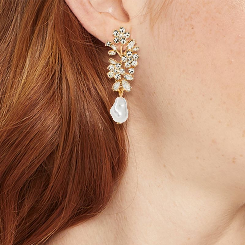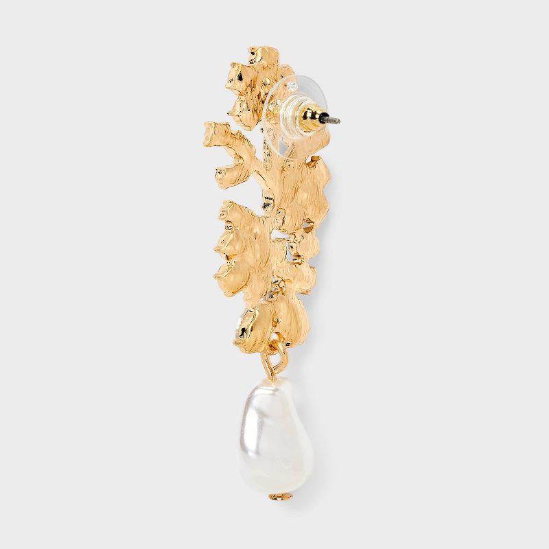 Crystal Vine Pearl Drop Earrings - A New Day™ Gold/Clear