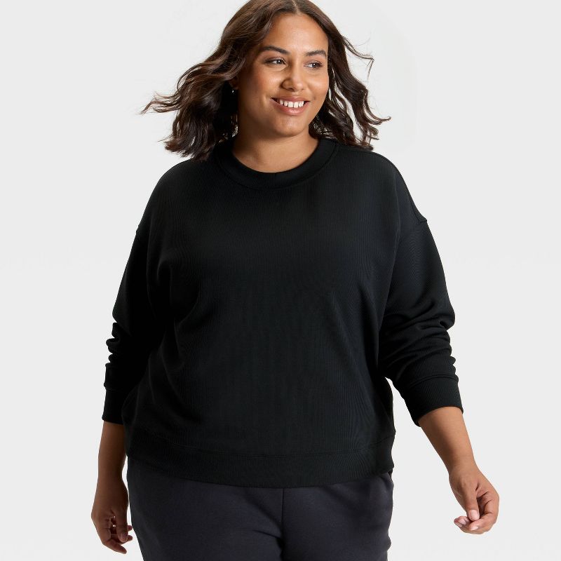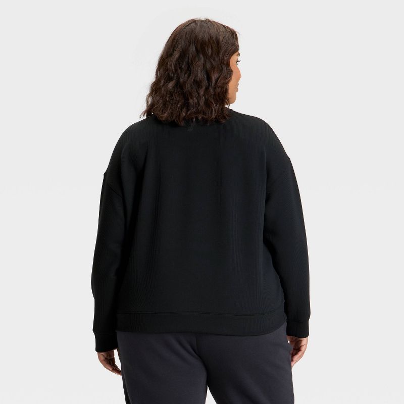 Women's Airy Sleek Ribbed Crewneck Sweatshirt - All In Motion™ Black 3X