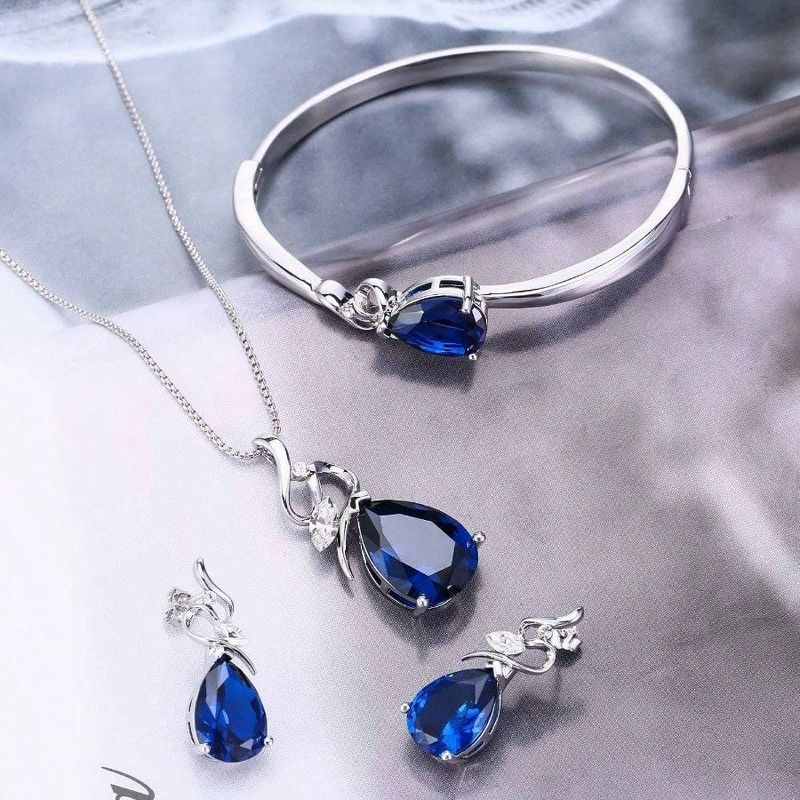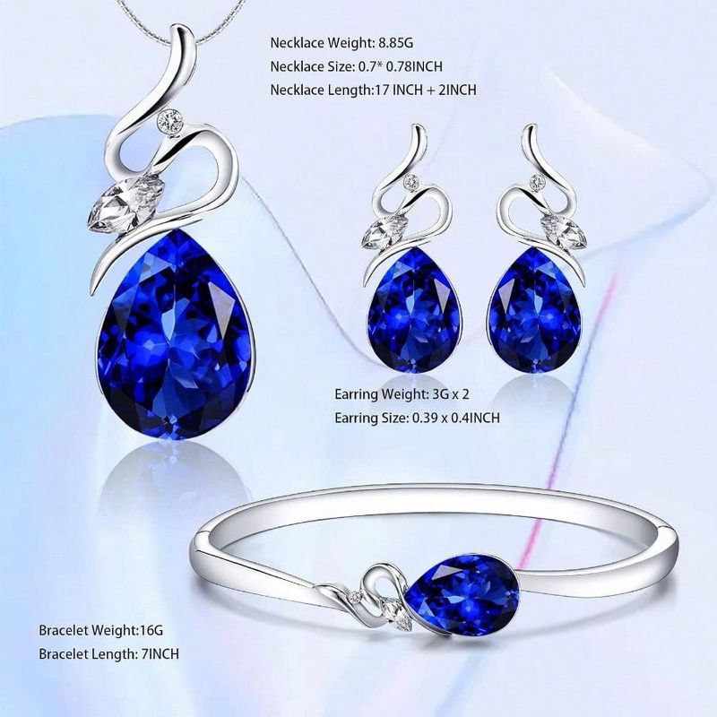 18K White Gold Plated Crystal Jewelry Set: Necklace, Bracelet, Earrings for Wife, Girlfriend, Mother‘s Day Gift blue Standard