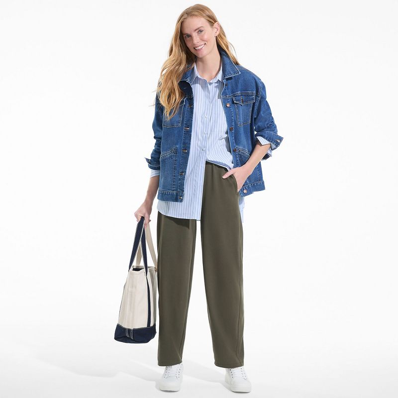 Lands' End Women's Petite Sport Knit High Rise Barrel Ankle Pants - Large - Forest Moss