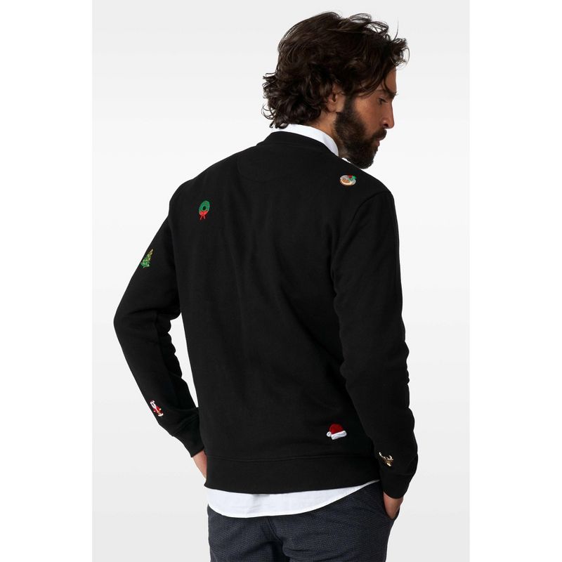 OppoSuits Deluxe Christmas Sweater for Men - X- Mas Icons - Black - With Stylish Christmas Icons - Long Sleeve - Crew Neck - Size Small