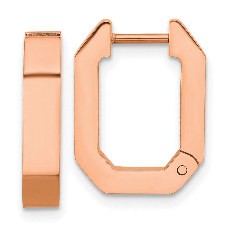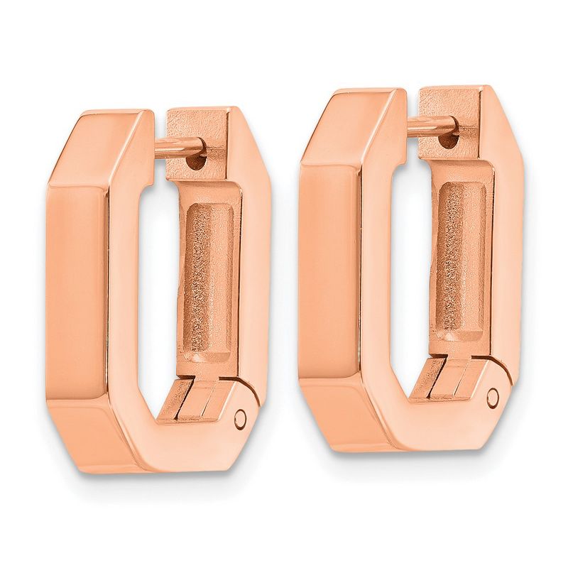Chisel Stainless Steel Polished Rose IP-plated Squared Edges 4mm Hinged Hoop Earrings