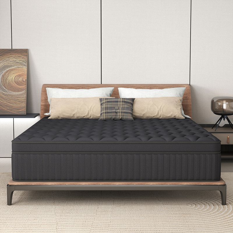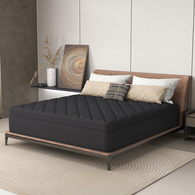CHEVNI 14 Inch Queen Size Mattress in a box Hybrid Spring Memory Foam Medium Firm Black - Black