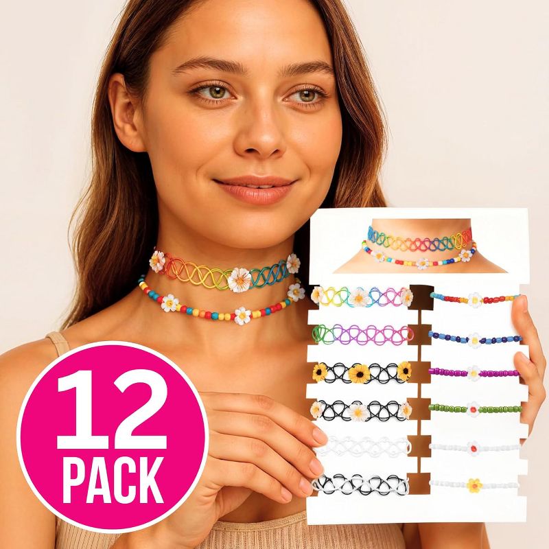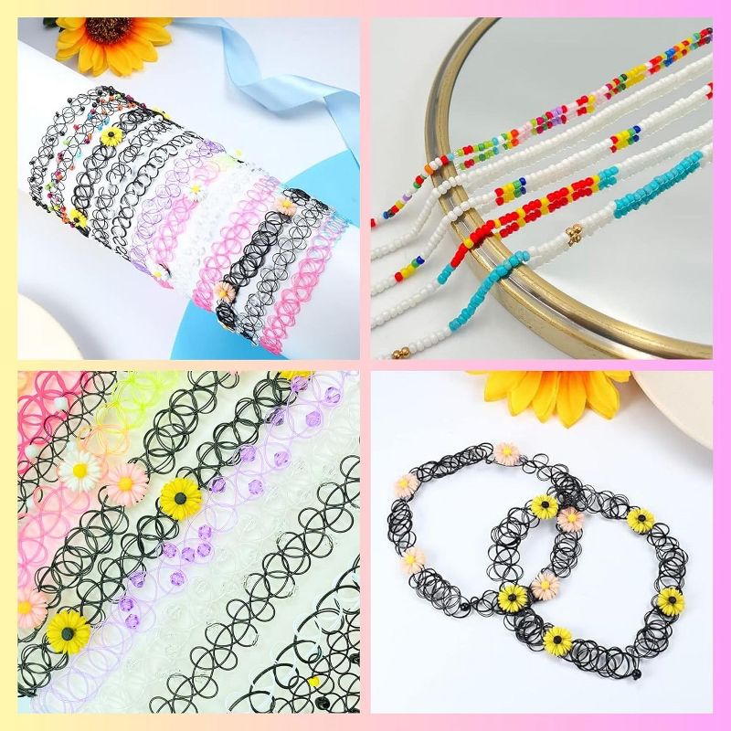 12PC Tattoo Choker Necklace for Women - 90s Choker Necklaces Y2K Vintage-Emo Black Choker Rainbow Pink White Purple Neon Green Blue Daisy Flower