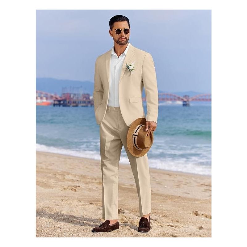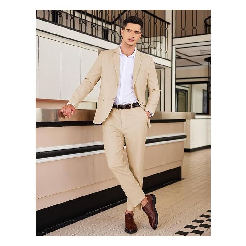 COOFANDY Men's 2 Piece Linen Suits Set Regular Fit Casual Linen Lightweight Suit Summer Beach Wedding Khaki XL