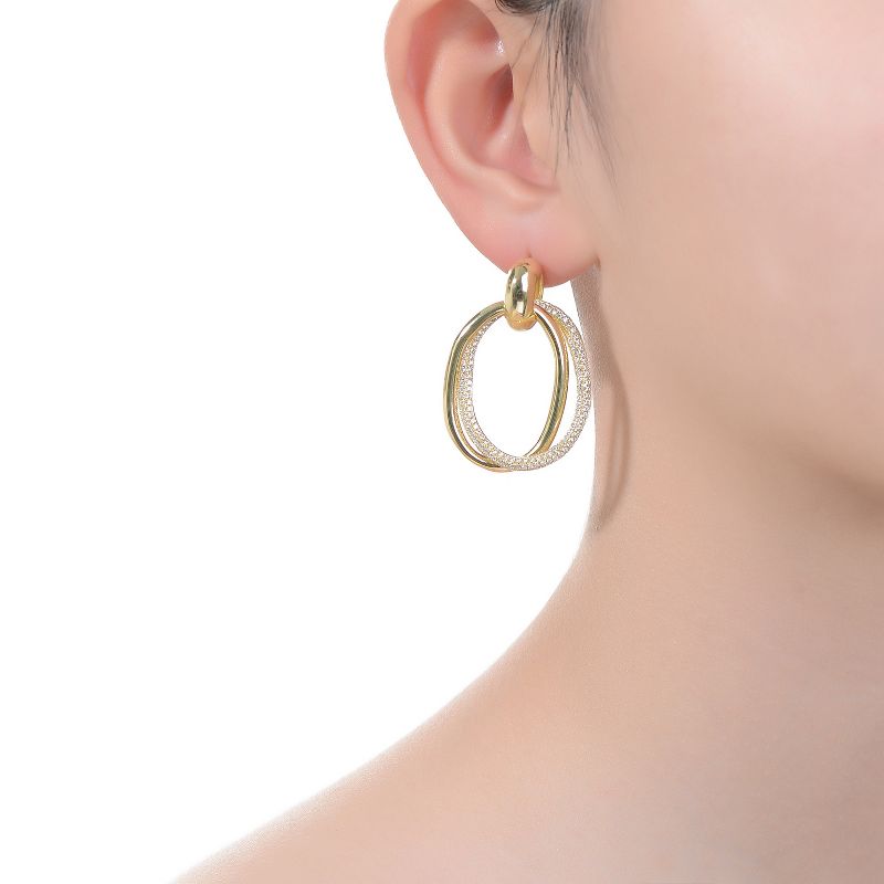 Elegant 14K Gold Plated Drop Earrings Adorned with Dazzling Cubic Zirconia for a Classic and Refined Look